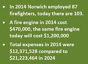 Over time, increasing costs outpace property tax revenue, which is basically held to the dollar amount it raised when the levy was voted in (2014 in this case). New development increases this amount, but it also increases costs. The department has felt the overall effects of inflation. The price of emergency vehicles and specialized equipment have been an especially hard hit. |